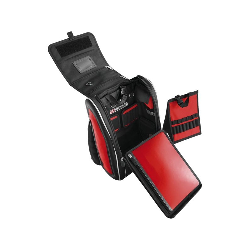 Permet de passer dans des espaces confinés. Compatible avec les échelles à crinoline. Fermetures à glissières cadenassables. Pochettes de rangement amovibles à positionnement libre grâce aux bandes de fixation (Velcro), avec élastique pour les outils. ?illets extérieurs ovales pouvant porter jusqu'à 0,5 kg chacun. Bretelles matelassées, ergonomiques, poignée sur le dessus. Bandes réfléchissantes sur l'avant et les côtés. Charge maxi : 10 kg Dimensions : 300 x 180 x 480 mm Livré sans outils.