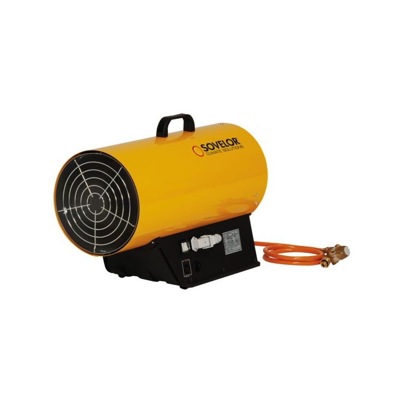 Utilisation intérieure et extérieure dans des locaux bien ventilés. Combustion directe. A commande manuelle. Équipé d'une sécurité de surchauffe, d'une sécurité stop-gaz, de 2 grilles de protection sur l'aspiration et le soufflage et d'un contrôle de flamme par thermocouple. Puissance réglable par vanne. Se fixe directement sur une bouteille de gaz propane. Puissance calorifique : 18 à 33 kW Alimentation : 230 V Débit d'air : 1000 m³/h Poids : 8 kg Tuyau souple, manodétendeur gaz, câble et prise électrique inclus.