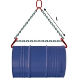 Pour la manutention en position horizontale de fût métallique à rebords. Élingue réglable équipée d'un anneau HR grade 80 et de 2 crochets en acier. Utilisation avec un angle maximum de 60°. Capacité de charge : 1000 kg Longueur L : 800 mm Poids : 5,500 kg 60% recyclable