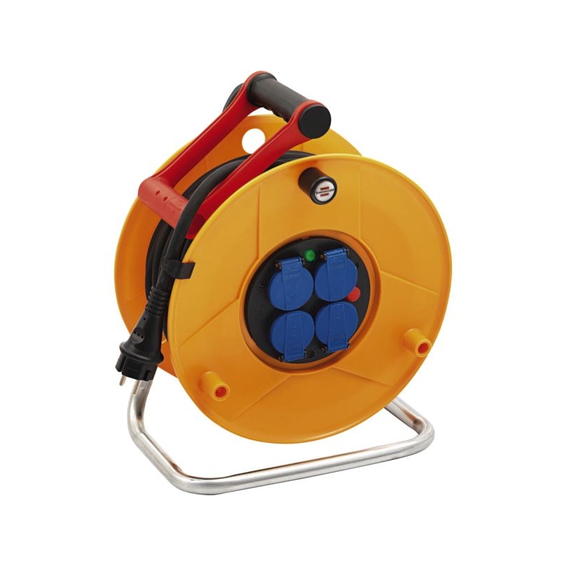 Câble H07RNF 3G2,5 mm². Équipé de 4 prises 2P+T - 16 A - 230 V à volet d'obturation. Poignée câblepilot® pour un guidage parfait. Disjoncteur thermique. Indice de protection : IP 44 Norme : EN 61242:1997/A1:2008