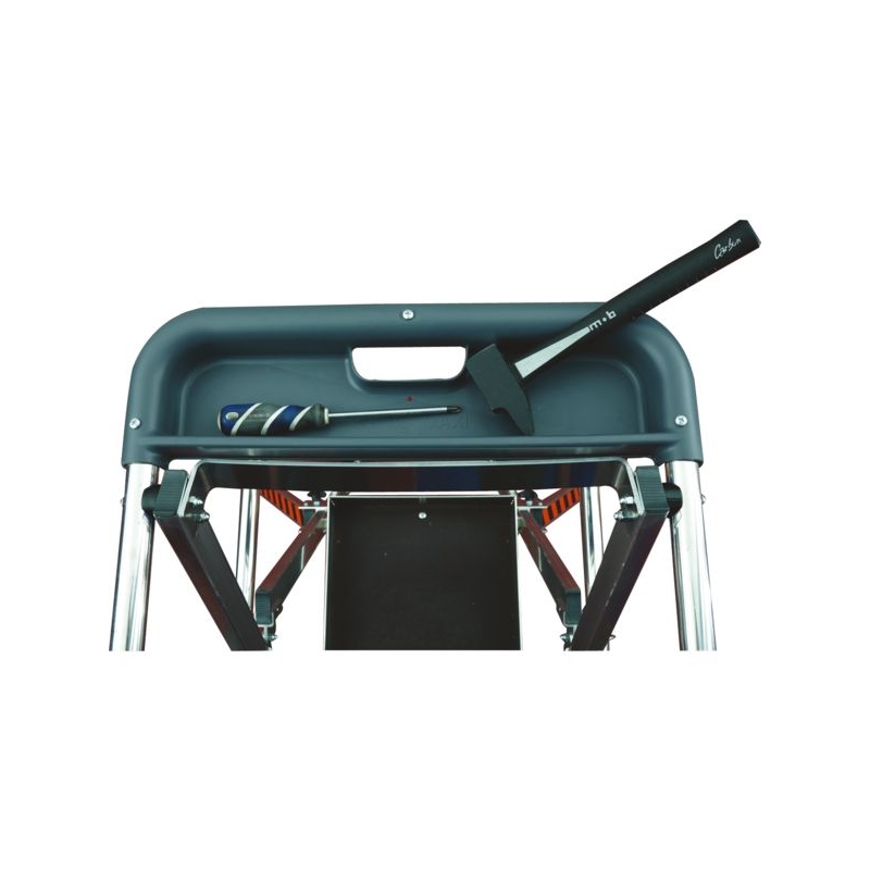 Utilisation sur sol plat. Usage ultra-intensif. En aluminium. Garde-corps 360° avec portillon semi-automatique rigide. Montants de 70 mm renforcés. Plate-forme anti-dérapante 600 x 420 mm avec plinthes intégrées. Marches striées antidérapantes de 80 mm. Tablette porte-outils intégrée. 2 roulettes Ø 160 mm pour les déplacements. Sabots antidérapants haute sécurité. Stabilisateurs à mise en place automatiques. Anneaux de grutage. Charge maxi. : 150 kg 3 à 6 marches : norme PIRL NFP 93353 - EN 131-7 - Décret 2004.924 7 à 8 marches : norme PIRL NFP 93352 - EN 131-7 - Décret 2004.924