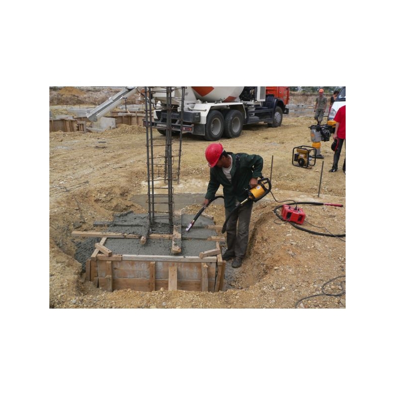 Pour le compactage des bétons par vibration. 4 anses, dont une pour faciliter le travail vertical. Rendement jusqu'à 35 m³/h de béton. Carcasse antichoc très résistante. Transmission longueur 3 m. Aiguille vibrante interchangeable Ø 40 mm. Puissance : 2300 W - 230 V Poids : 5,400 kg